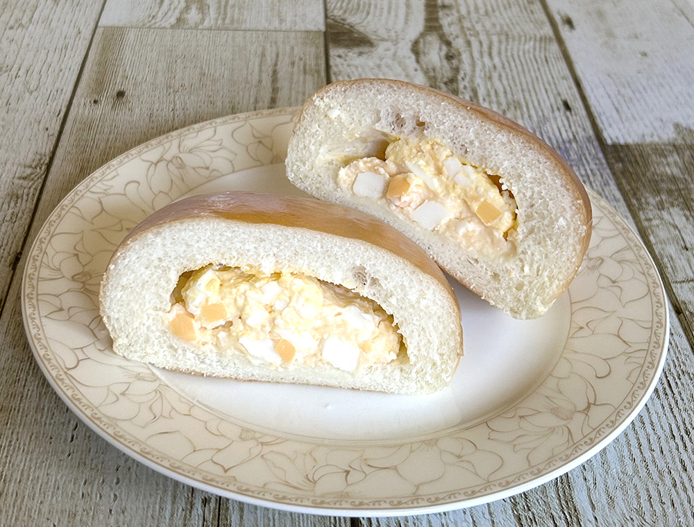 卵フィリング(国内製造)、小麦粉、砂糖混合異性化液糖、ファットスプレッド、加工油脂、卵、ぶどう糖、パン酵母、食塩、発酵風味料、乳等を主要原料とする食品(乳糖、たんぱく質濃縮ホエイパウダー、脱脂粉乳、植物油脂)、発酵種/加工デンプン、酢酸(Na)、グリシン、糊料(加工デンプン、増粘多糖類)、乳化剤、調味料(アミノ酸等)、ソルビット、香料、pH調整剤、イーストフード、酒精、酸化防止剤(V.E)、カロテノイド色素、V.C、シリコーン、(一部に乳成分・卵・小麦・大豆・りんごを含む)