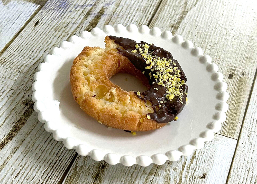 オールドファッション バター風味クランチ くちどけのいいケーキ生地のドーナツにチョココーティングし、バター風味クランチをトッピングしました。 オールドファッション バター風味クランチ 栄養成分表示(1個当たり) 熱量 482kcal たんぱく質 5.4g 脂質 26.0g 炭水化物 56.5g 食塩相当量 0.5g 栄養成分値は平均的な数値であり、製品規格や使用原料の変更により、変わることがございます。 原材料名 ミックス粉(小麦粉、砂糖、その他)(国内製造)、植物油脂、準チョコレート、砂糖、卵、焼菓子(クランブル)、食用加工油脂(植物油脂、砂糖)、粉末水あめ/加工デンプン、膨脹剤、乳化剤、ソルビット、香料、酒精、着色料(カロテノイド、V.B2、ウコン)、糊料(ペクチン)、酸化防止剤(V.E)、甘味料(スクラロース)、シリコーン、(一部に乳成分・卵・小麦・大豆を含む)