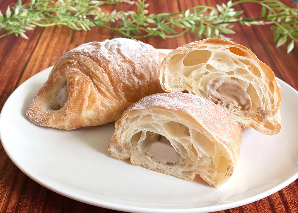 筒状のデニッシュにチョコホイップを入れました。