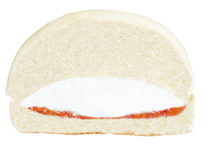白いメロンパンにホイップクリームとイチゴジャムを絞り、サンドしました。