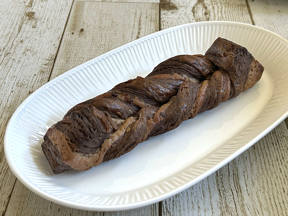 ビスケットパン 黒 チョコレート風味の油脂を折り込んだ生地と、チョコペーストを配合した生地を使用しました。さらにチョコチップをサンドしました。 ビスケットパン 黒 栄養成分表示(1個当たり) 熱量 386kcal たんぱく質 4.4g 脂質 17.5g 炭水化物 52.6g 食塩相当量 0.5g 栄養成分値は平均的な数値であり、製品規格や使用原料の変更により、変わることがございます。 原材料名 小麦粉(国内製造)、砂糖、チョコレートスプレッドB、卵、マーガリン、準チョコレート、ショートニング、発酵風味料、パン酵母、食塩、麦芽エキス、ライ麦粉/乳化剤、香料、加工デンプン、トレハロース、イーストフード、甘味料(スクラロース)、酸化防止剤(V.E)、V.C、カロテノイド色素、(一部に乳成分・卵・小麦・大豆を含む)