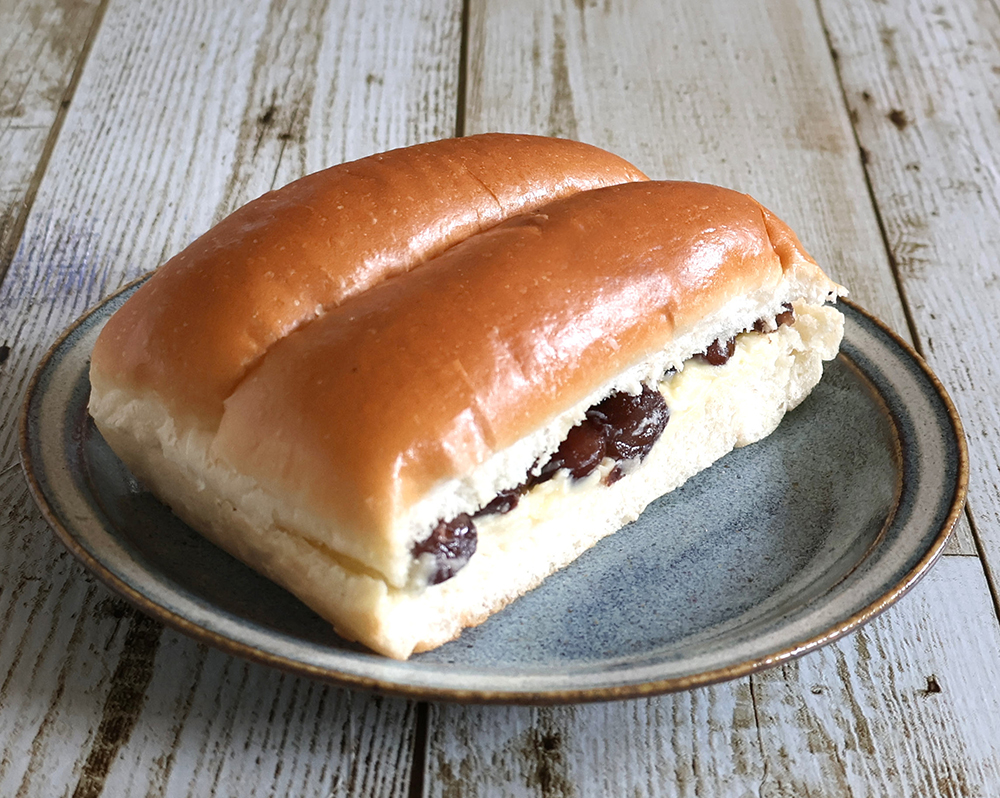ソフトなパンに金時豆とマーガリンをサンドしました。