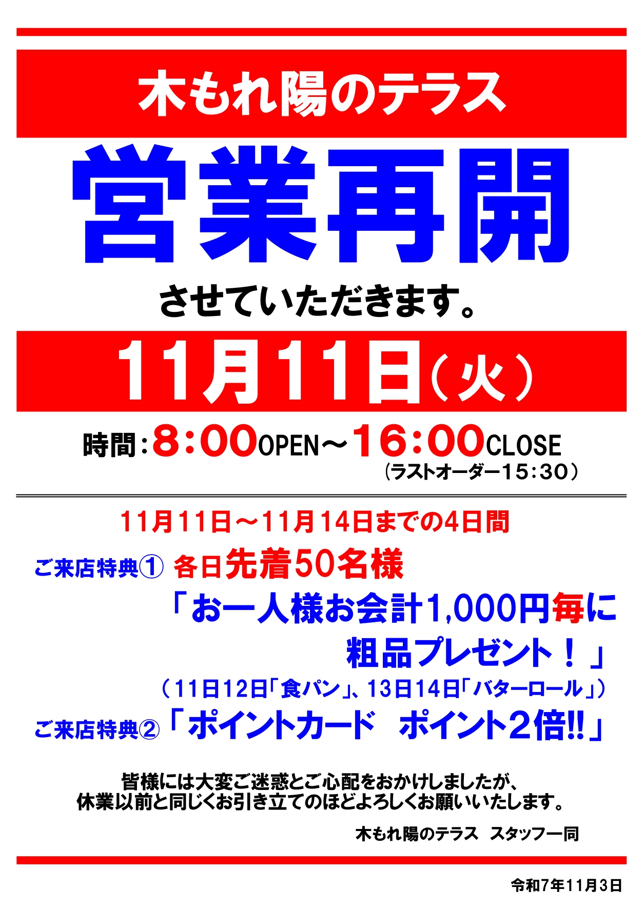 スタッフ一同、皆様のお越しを心よりお待ちいたしております。